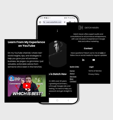 The responsive website features consulting services, audits, and a long-term content strategy anchored in the “Evergreen Resources” blog — offering timeless marketing and eCommerce advice. Every section was built to reinforce trust, approachability, and expertise.