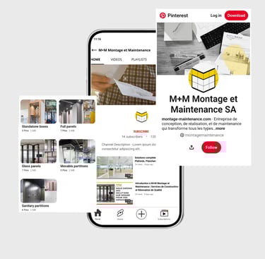 To strengthen their presence across platforms, I created and now manage their Pinterest and YouTube accounts, designing all visuals (thumbnails, pins, showcase videos) and shaping their brand storytelling for both clients and contractors. I also proposed an Instagram redesign aligned with their evolving brand identity.